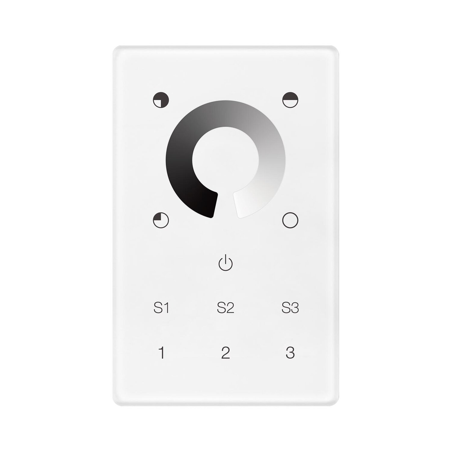 Der 2.4G Mesh DIM Wall Mounted Controller verfügt über eine berührungsempfindliche Glasoberfläche, die in den Farben Weiß und Schwarz erhältlich ist und für die Kompatibilität mit allen 2.4G Mesh-Empfängern der Universal-Serie ausgelegt ist. Er arbeitet mit einer 2,4GHz-Funkfrequenz und ermöglicht die Steuerung einer einfarbigen Beleuchtung in drei Zonen oder Bereichen.