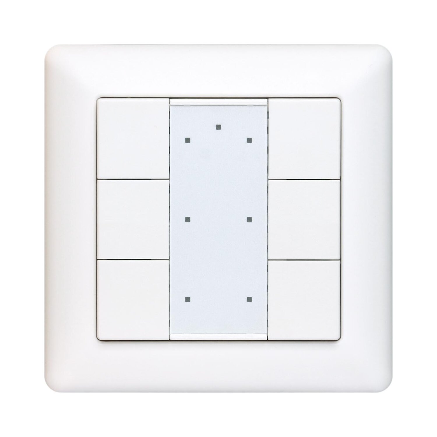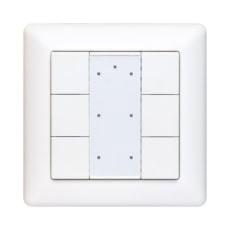 The KNX Push Button is available in 2-fold, 4-fold, 6-fold, and 8-fold versions, offering extensive operating functions with configurable bicolored LED indicators for each button, supporting switching and dimming, scene recall and storage, roller blinds and shutter control, adjustable for one or two button operation, and powered solely by the KNX bus power supply without requiring any additional power source.
