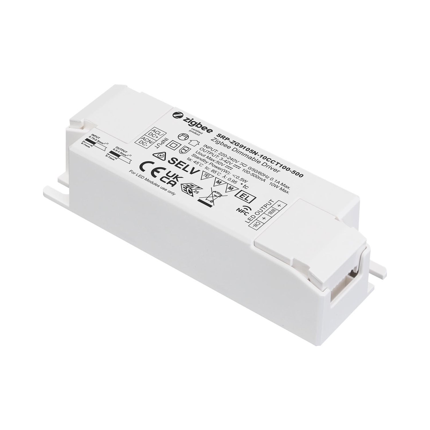 SRP-ZG9105N-10CCT100-500 es un controlador LED regulable NFC de 10w con salida de corriente constante de 2 canales y corriente ajustable de 100ma a 500ma, lo que permite que sea adecuado para luces LED de corriente constante con diferentes corrientes. Está diseñado con una entrada de 220-240VAC.