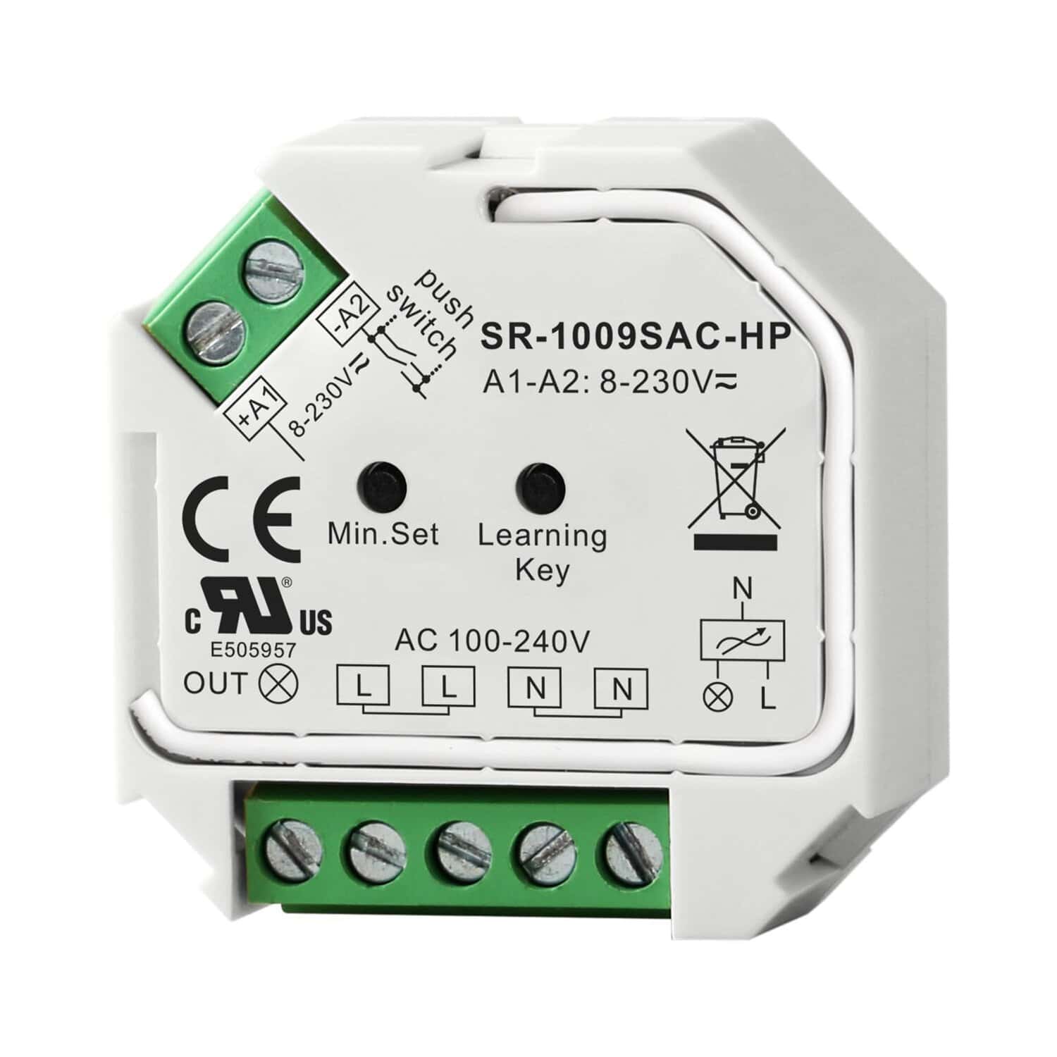 El SR-1009SAC-HP es un innovador atenuador de corte de fase de CA con control de RF y función de atenuación por pulsación. El atenuador de CA está diseñado con entrada y salida de 100-240 VCA, 1 canal y una potencia máxima de 400 W. El atenuador de RF es regulable tanto por triac como por mosfet. El atenuador RF es regulable tanto por triac como por mosfet. La innovadora función de ajuste de brillo mínimo permite a los usuarios establecer un brillo mínimo y atenuar desde este brillo mínimo hasta el brillo 100%. También es fácil eliminar el brillo mínimo. El dimmer triac RF puede ser compatible con una variedad de mandos a distancia de la serie Perfect RF. Mientras trabaja con un conveter WiFi-RF, el dimmer de corte de fase puede ser WiFi controlado vía APP instalada en sistema IOS o Android. La función Push dim está disponible mientras el dimmer está conectado con un interruptor pulsador. Es compatible con pulsadores universales de entrada 8v-230v AC y DC.