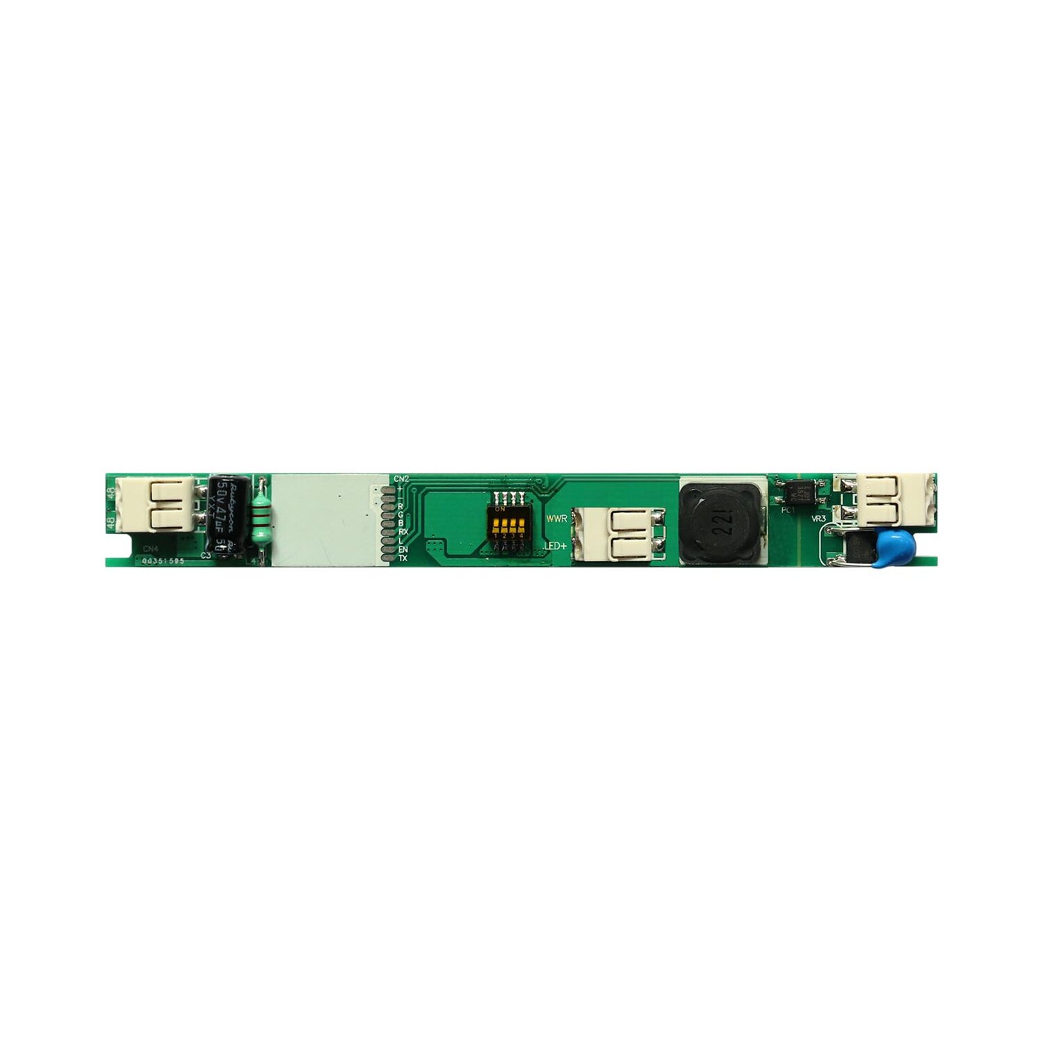 The DALI LED Controller for Magnet Track Light is a super slim DALI DT6 LED controller designed specifically for magnet track and linear lighting, featuring magnet absorption installation without high frequency interference noise, DC 48V input with a maximum output power of 30W, one channel constant current output adjustable from 100 to 700mA via DIP switches, deep and smooth flicker-free dimming to 0.1%, built-in DALI-2 interface as a DALI DT6 device, compliance with IEC 62386 standards, and compatibility with all DALI systems on the market.