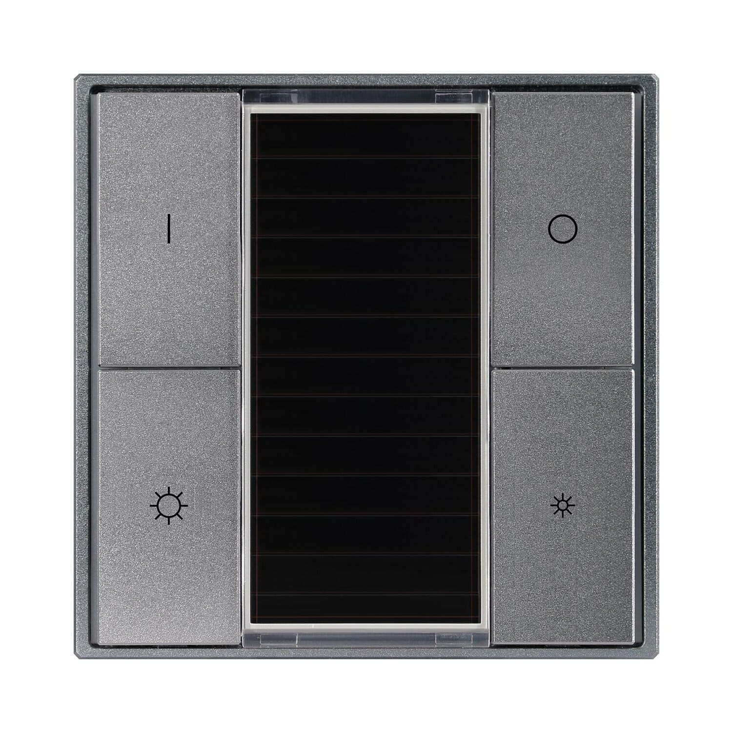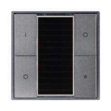 The Light-Powered DIM Zigbee GP Switch is a wireless transmitter that operates without batteries, using a built-in solar panel to generate and store energy from natural or artificial light sources to power its internal Zigbee transmitter.