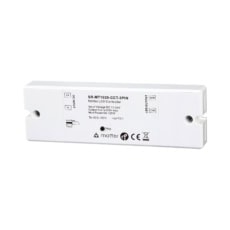 The Matter Over Thread + Zigbee Dual Tech CCT LED Controller is a Matter-certified device that communicates via an IPv6 Thread Network, offering a 12-24VDC input and 12V/24V constant voltage output with a single channel supporting up to 5A of output current.