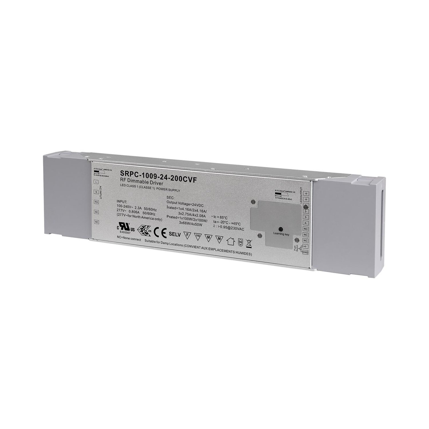 Le pilote de LED RF 200W (tension constante) présente un boîtier métallique rectangulaire avec une sortie à tension constante 12/24VDC à 4 canaux, offrant une isolation de classe 1 et un PFC actif intégré à deux niveaux pour un PF > 0,98 et une efficacité > 93%, avec une consommation en veille inférieure à 1W ; il prend en charge les interfaces de gradation sans fil RF et PUSH LV à 868/869.5/916,5/434MHz, il est conforme aux normes Safety Extra Low Voltage, comprend une protection contre les surcharges et les surchauffes, est compatible avec diverses télécommandes RF et prend en charge le contrôle WiFi via les applications iOS et Android.