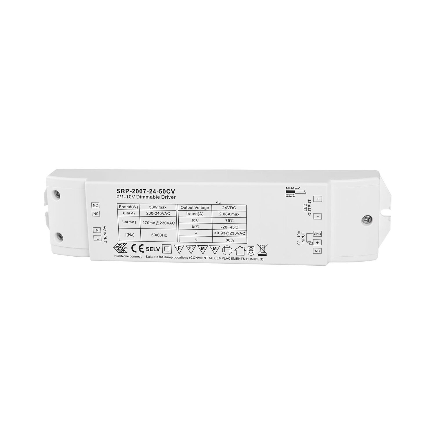 Le driver LED 50W 0/1-10V (tension constante) est un driver LED dimmable avec une puissance de sortie maximale de 50W, offrant une sortie à tension constante DC 12/24V à 1 canal. Il dispose d'une alimentation de classe II avec un boîtier plastique entièrement isolé, garantissant un facteur de puissance et une efficacité élevés.