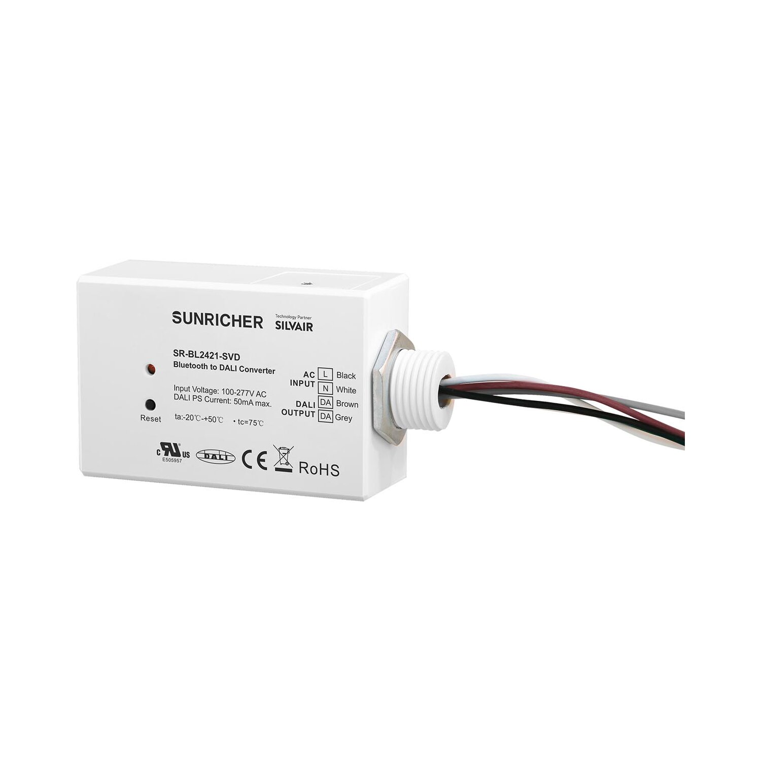 Le convertisseur Bluetooth vers DALI est un appareil basé sur un réseau maillé Bluetooth qui convertit les signaux Bluetooth en signaux DALI. Il dispose d'une alimentation bus DALI intégrée, éliminant ainsi le besoin d'une alimentation bus DALI supplémentaire.