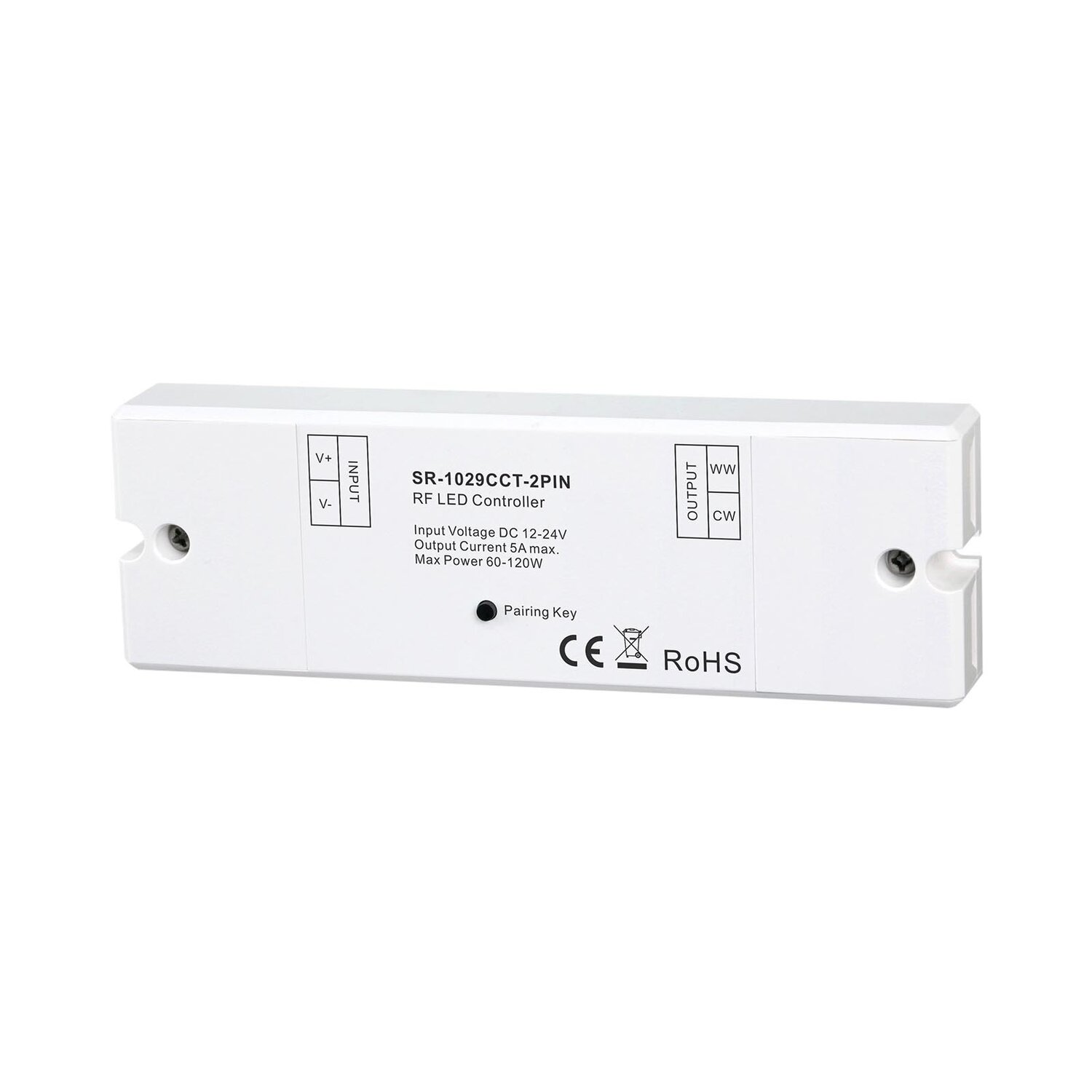 The RF CCT LED Receiver operates on radio frequencies of 868/915/434MHz, providing reliable control for CCT LED lighting systems.