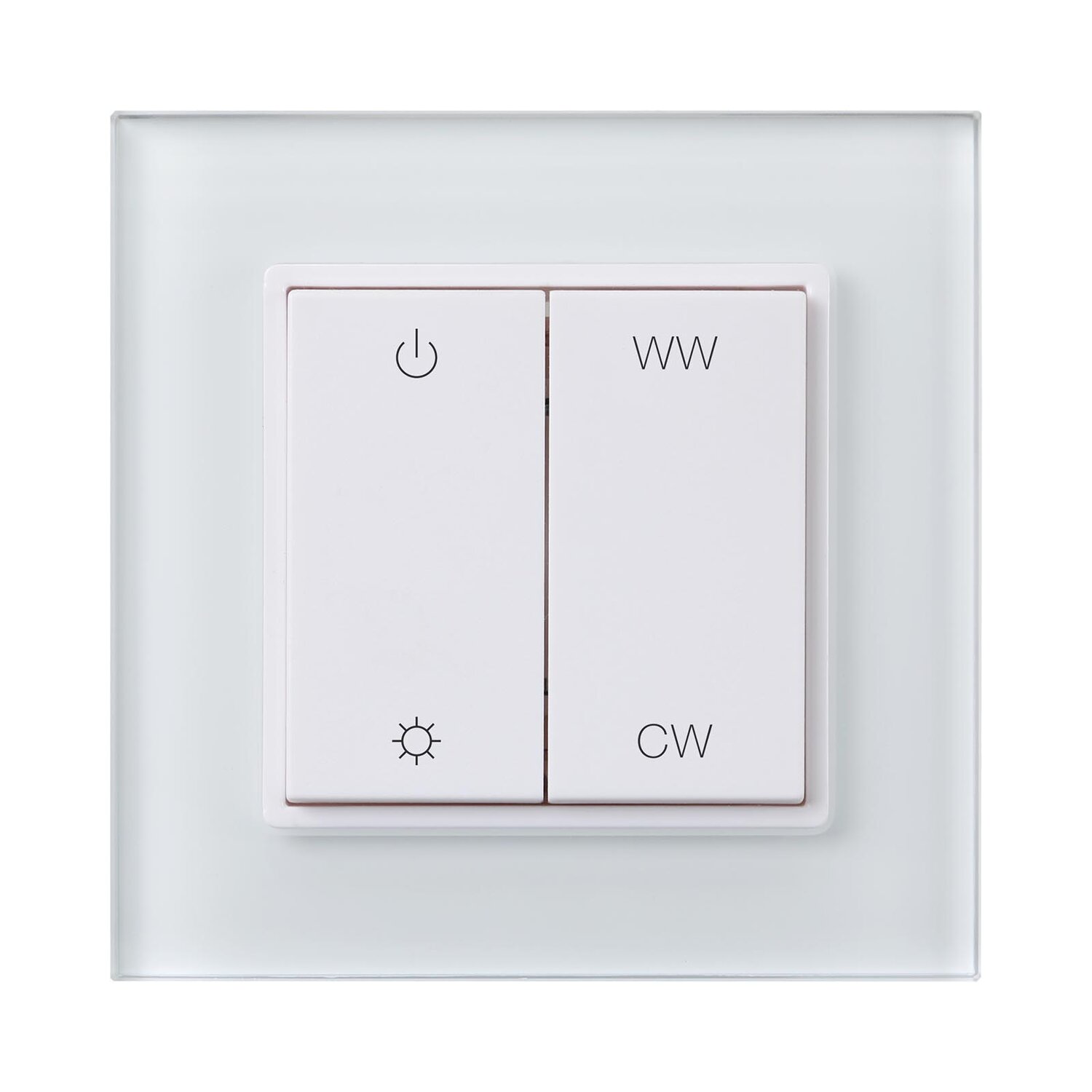 Le contrôleur mural RF Dual Color permet de contrôler une zone d'un récepteur RF avec un contrôle de couleur CCT. Il est compatible avec tous les récepteurs RF de la série universelle et chaque récepteur peut être associé à huit télécommandes différentes.