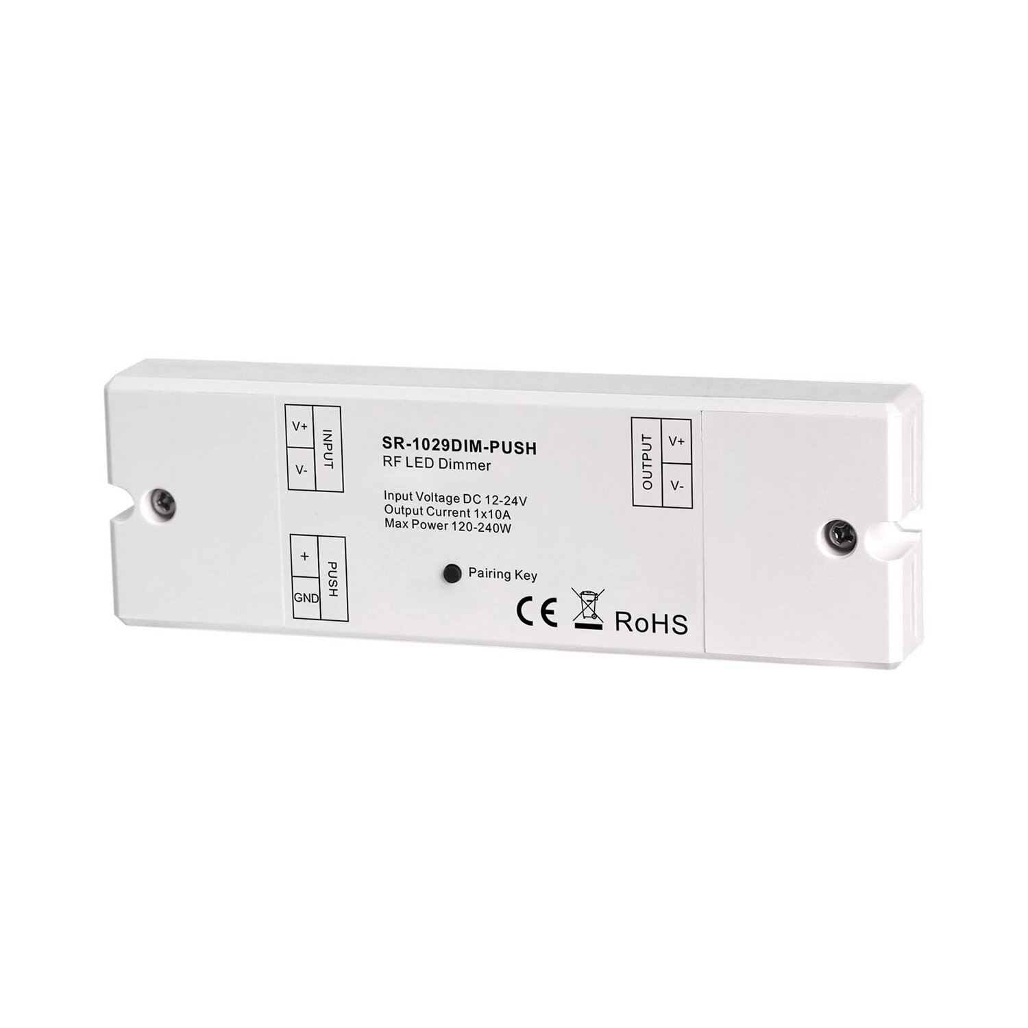 The RF Receiver operates on a 868MHz radio frequency, ensuring stable and efficient communication for various RF-controlled devices. It is designed to work seamlessly with compatible transmitters, making it ideal for controlling lighting and other connected systems.