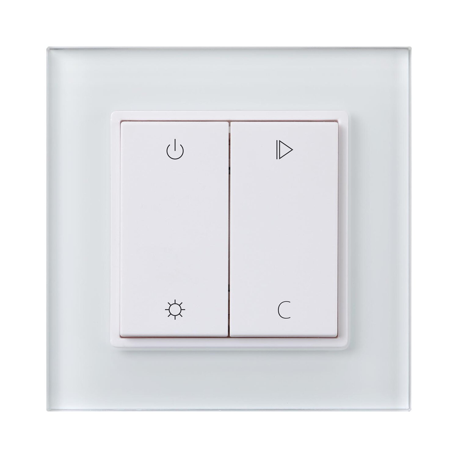 SR-2833RGB is a RF wireless push remote controller which is designed control RGB or RGBW LEDs with both switch and brightness adjustment function. It is a single zone RGB or RGBW controller with 1 built-in dynamic changing pattern and 10 static colors.