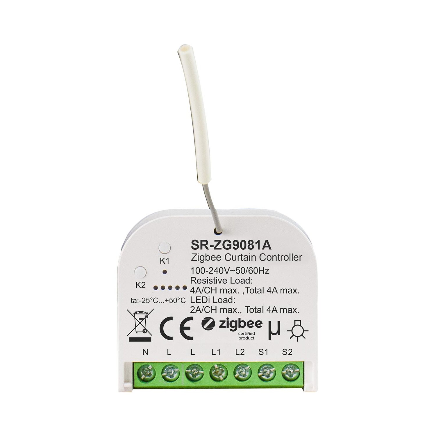 Le contrôleur de rideaux intelligent ZigBee est un appareil de pointe basé sur le dernier protocole ZigBee 3.0, conçu pour contrôler divers types de rideaux, notamment les stores à enrouleur, les volets roulants et les rideaux. Il permet de contrôler à la fois les rideaux et l'éclairage, le contrôle des rideaux étant le réglage par défaut, et peut être géré via une application intelligente ou une télécommande ZigBee. Le contrôleur permet un fonctionnement local avec des interrupteurs externes, même sans être ajouté à un réseau ZigBee. Grâce à ses capacités de contrôle précises, il prend en charge à la fois le contrôle ON/OFF et le contrôle de niveau. Ce dispositif terminal ZigBee prend en charge la mise en service Touchlink, les réseaux ZigBee auto-formés sans besoin de coordinateur, et un mode de recherche et de liaison pour la connexion à une télécommande ZigBee. Il prend également en charge la technologie ZigBee Green Power et peut se connecter à jusqu'à 20 télécommandes ZigBee Green Power. De plus, il est compatible avec les produits de passerelle ZigBee universels.