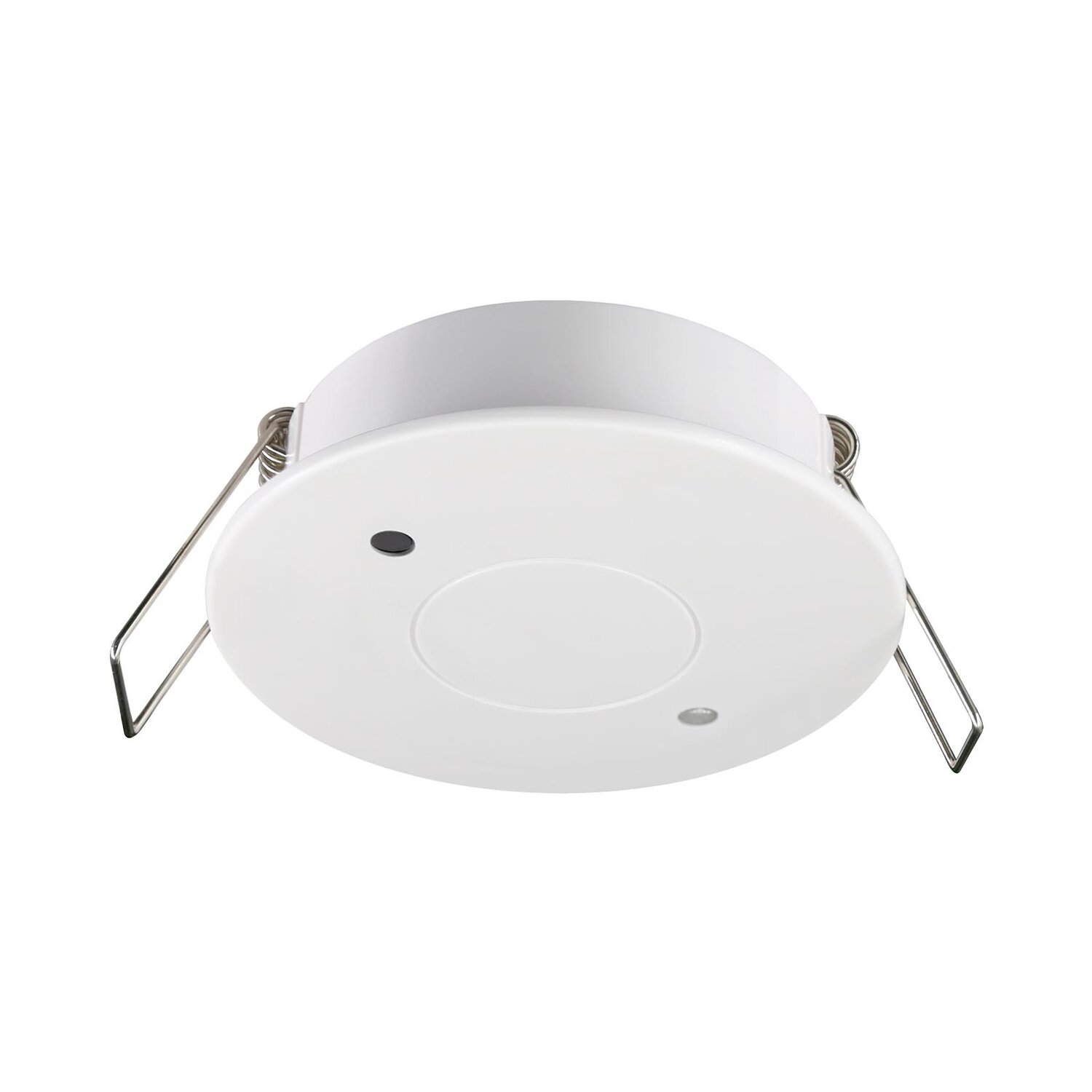 The 0-10V BLE Ceiling Mounted Sensor Controller features a Bluetooth mesh network with microwave sensing and daylight harvesting capabilities. It has a built-in 20mA 0-10V signal output and allows all devices on the 0-10V line to be controlled via a mobile application. The mesh network extends control distance by transmitting signals to neighboring devices and supports kinetic energy switches and EnOcean switches EWSSB and EWSDB. In typical indoor environments, the wireless communication range is between 20m and 25m, depending on installation conditions. The controller includes an on-board antenna and offers a magnetic reset option, activated by touching the top part of the sensor for five seconds. It has a waterproof grade of IP20 and comes with a five-year warranty.