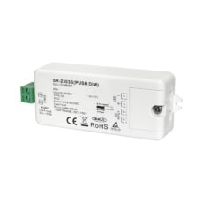 Product Description. This DALI & PUSH dimmer is a DALI-2, CE and FC certified device, coupled with 12-48VDC power input. This device is in compliance with IEC 62386-101:2014, IEC 62386-102:2014, IEC 62386-207 Ed2, and can match all DALI systems in the market, so that you can rest assured to use it. With one DALI address input and one channel PWM output, this dimmer has both DALI dimmer and PUSH dimmer functions while connected with DALI master controllers and AC PUSH switches respectively.