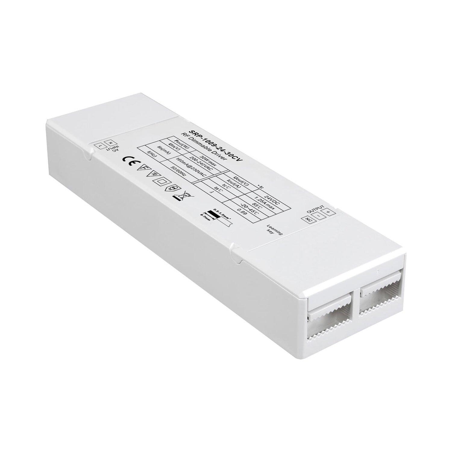 The 30W RF LED Driver (Constant Voltage) provides 1 channel 12V/24VDC constant voltage output and features a class II power supply with a fully isolated plastic case.