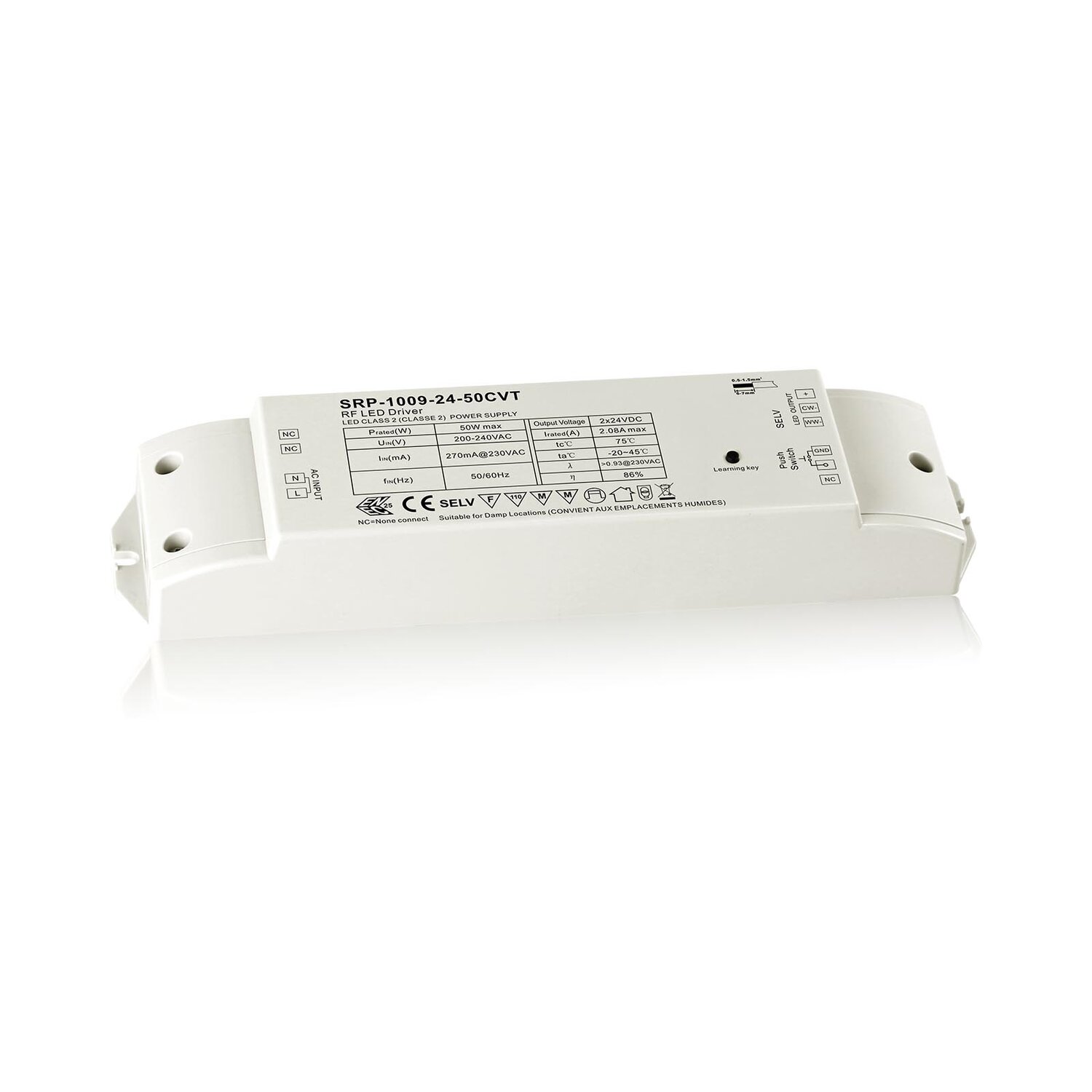 SRP-1009-24-50CVT is a 50W Dimmable Constant Voltage LED Driver with 2 channels 24VDC output, 12VDC version is also available, which enables it to be suitable for CCT LED lights with different voltage. It is designed with 200-240VAC input.