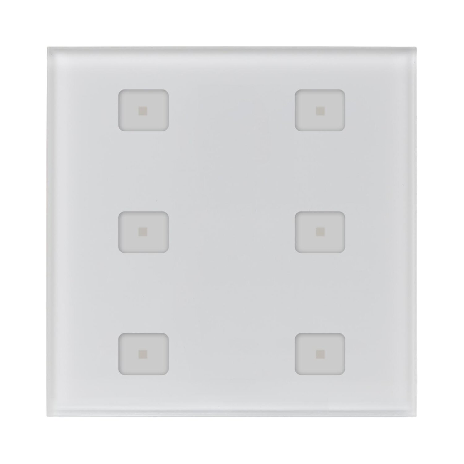 This 6-Key DALI Wall Switch Touch Panel is a DALI-2 control device with 6 touch buttons according to IEC62386-101, IEC62386-103, IEC62386-301 and IEC62386-332. This device supports feedback functionality, provides 12 LEDs, and is suitable for integration and in combination with DALI-2 compliant central control units. It is multimaster capable, and its multiple modules allow it to be installed on the DALI- line. Moreover, this panel is powered by DALI bus, and no extra power supply is required. It can also be configured via DALI-2 compliant central controller USB interface, and is compatible with universal 55mm frames.