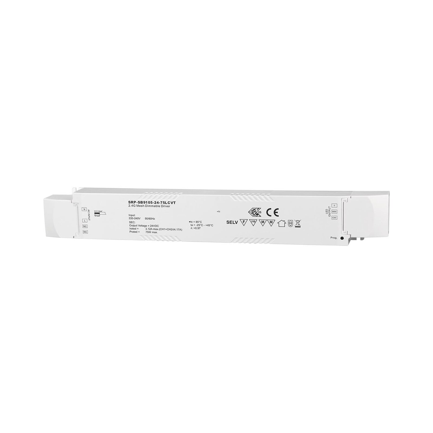 The 75W 24V Bluetooth CCT Constant Voltage Dimmable LED Driver provides a maximum output power of 75W with two channels for DC 24V constant voltage output.
