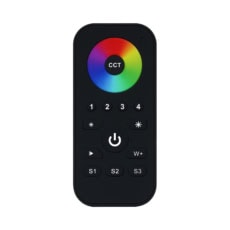 The Casambi RGBCCT Remote Controller allows for seamless control of single color, CCT, RGB, RGBW, and RGB+CCT lighting devices. Featuring a highly sensitive and stable touch color wheel, it provides fast and precise color adjustments.