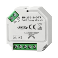 The SR-2701S-DT7 is a DALI-2 relay module which is capable of switching both AC and DC loads. The DALI RM enables to integrate existing loads which do not have DALI input into DALI circuit and switch on/off the loads.