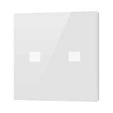 The KNX Touch Panel is available in 2-key, 4-key, 6-key, and 8-key versions featuring an ultra-slim design with a tempered glass front plate and high touch sensitivity, customizable labels printed on included PVC paper, extensive operating functions including configurable bicolored LED indicators for each button, switching and dimming, scene recall and storage, roller blinds and shutter control, adjustable touch keys for one or two button operation, powered by the KNX bus power supply without needing an extra power source, and designed for easy installation with a mounting bracket.