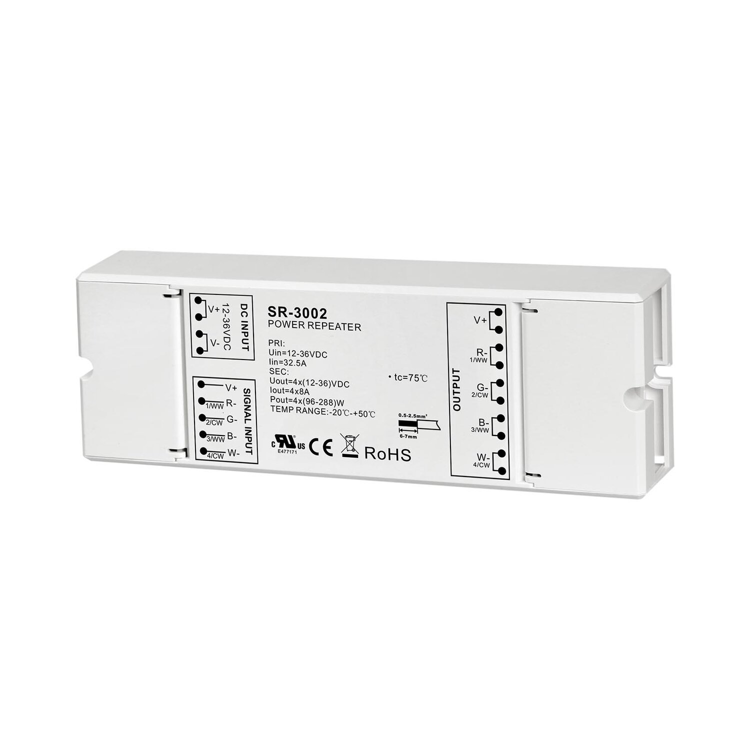 The Power Repeater / Amplifier is designed to repeat dimming signals and is available in one channel, three channel, and four channel options, with a maximum of 24A per channel. It can be connected in series to expand output power without limitation.