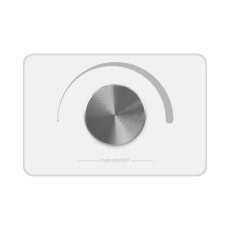 The RF Single Color Wall Mounted Controller features a rotation-sensitive glass interface available in white or black, operates at 868/869.5/434MHz radio frequency, supports single color control for one zone, and is compatible with all universal series RF receivers.