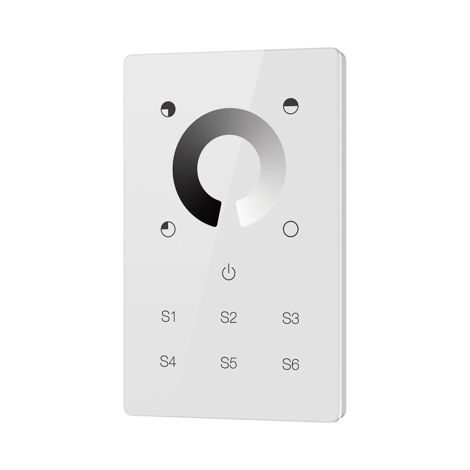The Single Color Wall Mounted Touch ZigBee Remote Controller is a Zigbee 3.0 wireless dimmer switch with a full touch glass interface for smooth light intensity control, supporting touchlink commissioning and find and bind mode to pair with Zigbee lighting devices, allowing one group binding of up to 30 devices, operating at 2.4 GHz with a transmission range of up to 30 meters, and compatible with universal Zigbee gateways and Zigbee dimmable lighting devices.