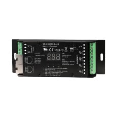 It features full support to the latest DMX512, DMX512(1990), DMX512-A and RDM V1.0 (E1.20 – 2006 ESTA Standard) protocols. The DMX decoder is designed with 4 channels, 8A per channel constant voltage output and available in 12VDC, 24VDC and 36VDC.