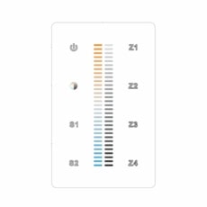 The Wall Mounted CCT Color PWM Controller is touch sensitive and features a glass interface in white and black. It outputs four channels of PWM signal and is designed to control CCT color.