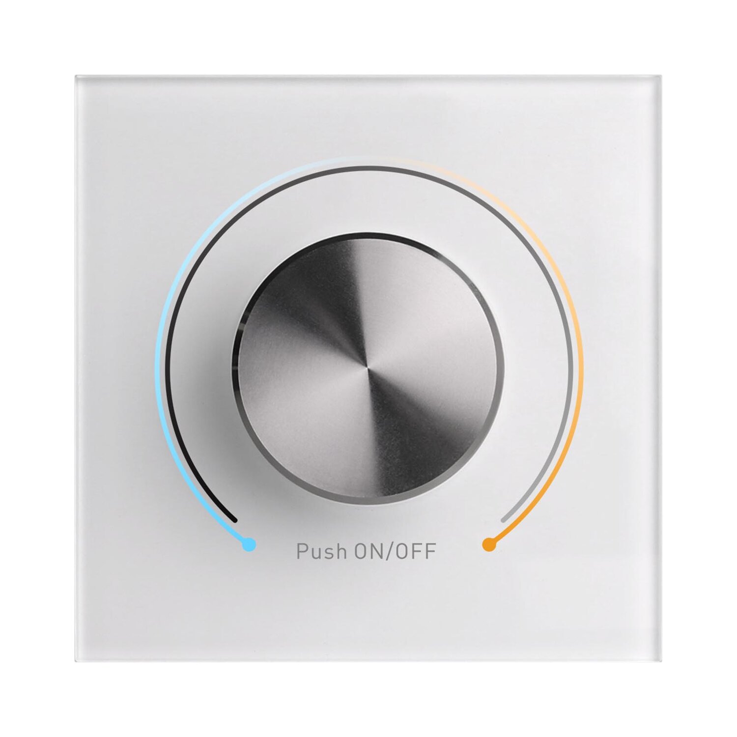 The Wall Mounted RF AC CCT Controller is rotation-sensitive and operates at a 916.5MHz radio frequency, ensuring compatibility with all universal series RF receivers. It provides control over CCT color for one zone of an RF receiver, with a safe and reliable full isolation design for enhanced performance.
